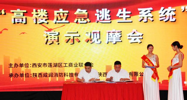 2018年8月我司承辦的“高樓應(yīng)急安全逃生系統(tǒng)”全國(guó)首屆推廣會(huì)如期舉行,該系統(tǒng)旨在解決“高樓如何快速安全逃生”這項(xiàng)世界課題。參加此次推廣會(huì)的單位有:上海市消防支隊(duì)、上海市消防協(xié)會(huì)、陜西省安監(jiān)局、陜西省消防總隊(duì)、陜西省消防協(xié)會(huì)、兵器工業(yè)衛(wèi)生研究所安全技術(shù)研究中心、深證市公共安全研究所、西安市安監(jiān)局、西安市消防支隊(duì)、咸陽(yáng)市安監(jiān)局、咸陽(yáng)市消防支隊(duì)、西安市蓮湖區(qū)委。區(qū)政府、工商業(yè)聯(lián)合會(huì)等與會(huì)單位、以及碧桂園、綠地集團(tuán)、海亮地產(chǎn)、天朗集團(tuán)、聚成物業(yè)等20多家地產(chǎn)企業(yè)?,F(xiàn)場(chǎng)反響熱烈,30多家知名媒體相繼報(bào)道。此次會(huì)議3家地產(chǎn)企業(yè)現(xiàn)場(chǎng)與我司簽訂戰(zhàn)略合作協(xié)議,在接下來(lái)參觀位于西安市蓮湖區(qū)華府西城港灣小區(qū)的“高樓應(yīng)急安全逃生系統(tǒng)”樣板項(xiàng)目時(shí),省市級(jí)消防有關(guān)領(lǐng)導(dǎo)人強(qiáng)烈要求親自做現(xiàn)場(chǎng)滑行測(cè)試,并給予“高樓應(yīng)急安全逃生系統(tǒng)”高度評(píng)價(jià)。目前,此項(xiàng)目在上海市奉賢區(qū)陽(yáng)光家園、西安市海亮新英里、華府西城港灣投入使用并在全國(guó)推廣。