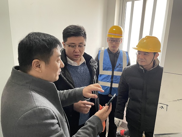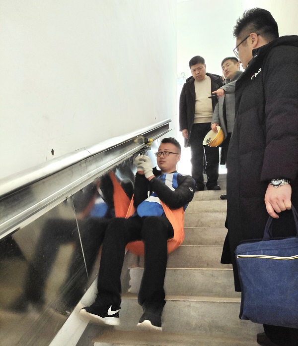 隨后,考察團一行親臨西咸新區(qū)灃西新城“高樓應(yīng)急安全逃生智聯(lián)系統(tǒng)”升級項目施工現(xiàn)場。施工現(xiàn)場正在安裝高樓應(yīng)急專用軌道。