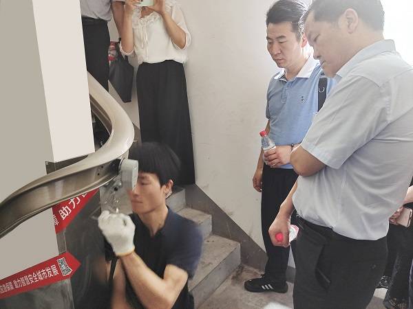 在觀摩項目投入使用社區(qū)時,專業(yè)技術(shù)人員對高樓應(yīng)急自救裝置、高樓應(yīng)急專用軌道、位置追蹤設(shè)備及智能APP管理平臺等物聯(lián)網(wǎng)應(yīng)用平臺及相關(guān)硬件設(shè)備進(jìn)行了細(xì)致講解。