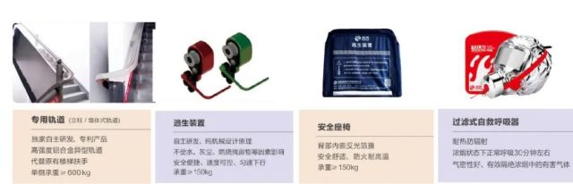 該系統(tǒng)分為逃生設(shè)施和智聯(lián)系統(tǒng)兩部分,通過人防+物防+技防的手段,形成立體化安全防控體系,解決城市高層建筑應(yīng)急自救逃生面臨的重大難題。
